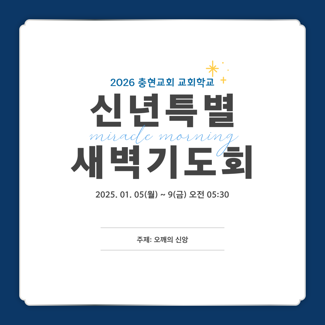 샬롬! 2026년 신년특별 새벽기도회가 진행됨에 따라