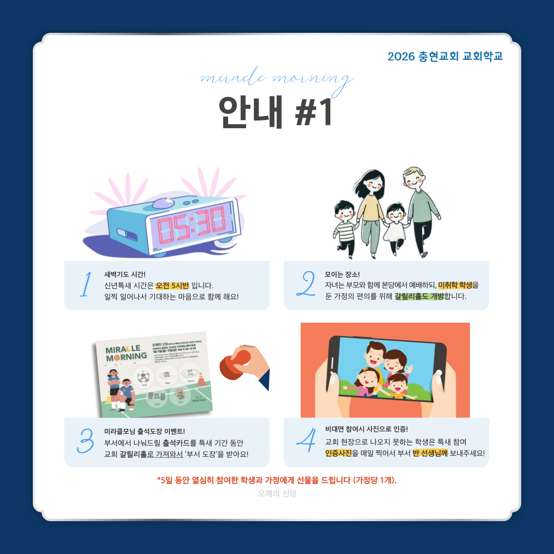 교회학교도 미라클모닝(MIRCALE MORNING) 이벤트를 진행합니다.