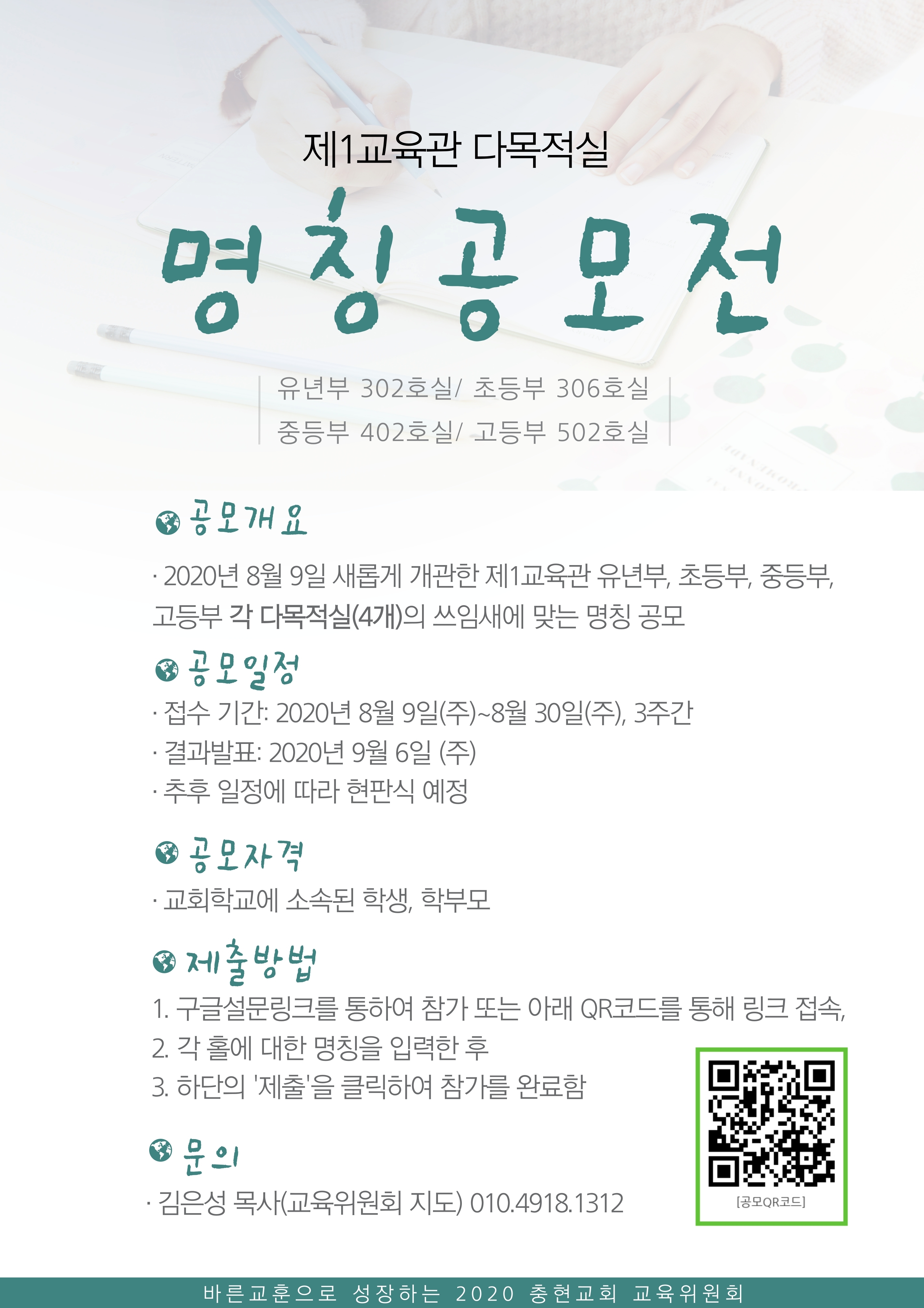 제1교육관 다목적실 명칭 공모전(구글설문링크와 QR코드 포함)