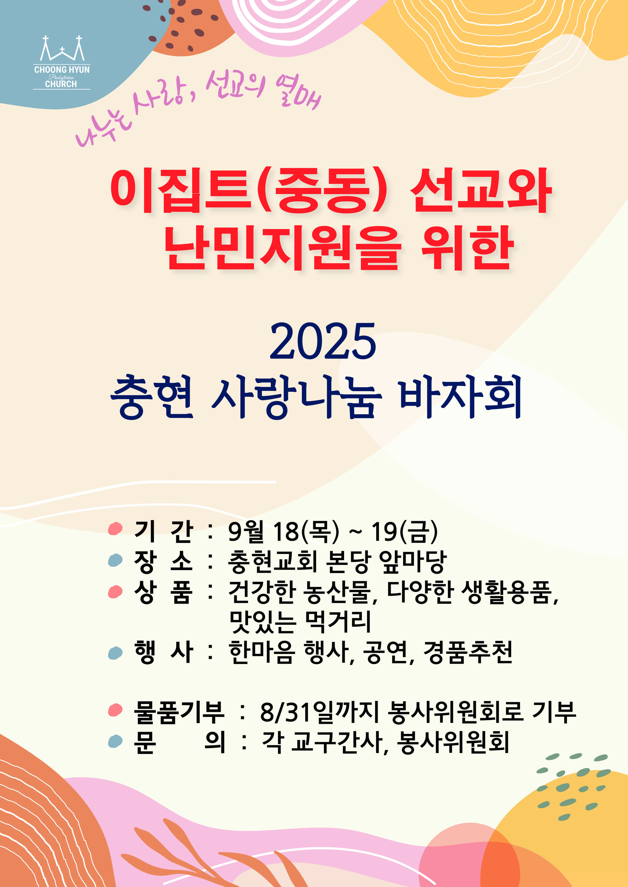 2025 충현사랑나눔 바자회 ( 9.18~19 )