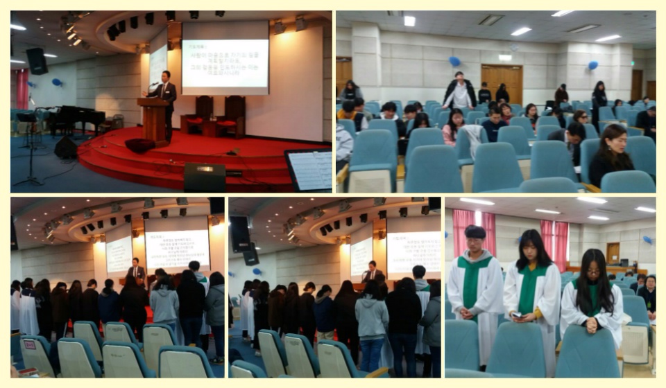오늘 고등부에서는 새로 부임하신 김은성 목사님께서 처음으로 오셔서 첫 설교를 해 주셨습니다~ 설교를 마치신 후 2부 순서에서 고3을 위한 기도회를 인도해 주셨습니다. 그리고...청년1부에서 깜짝 방문을 하여 고등부 후배들을 예쁘게 준비한 선물 꾸러미와 함께 격려해 주시고 청년1부 소개도 간략하게 해 주셨습니다~고등부를 향하신 많은 관심과 기도가운데 고등부는 새로운 시작을 하려 합니다~얼마 남지 않은 수능을 위해 지속적인 관심과 기도를 부탁드립니다~감사합니다~^^