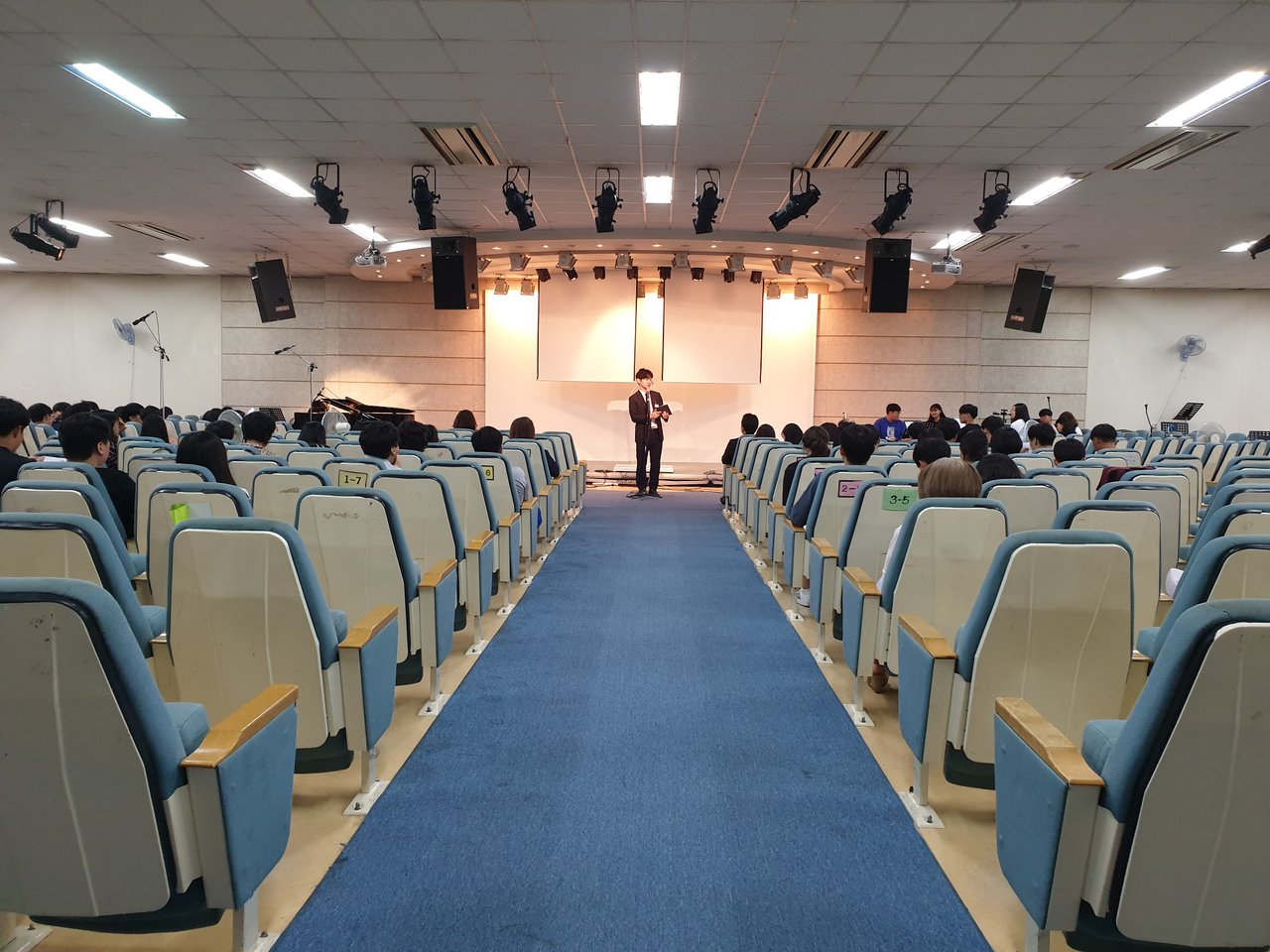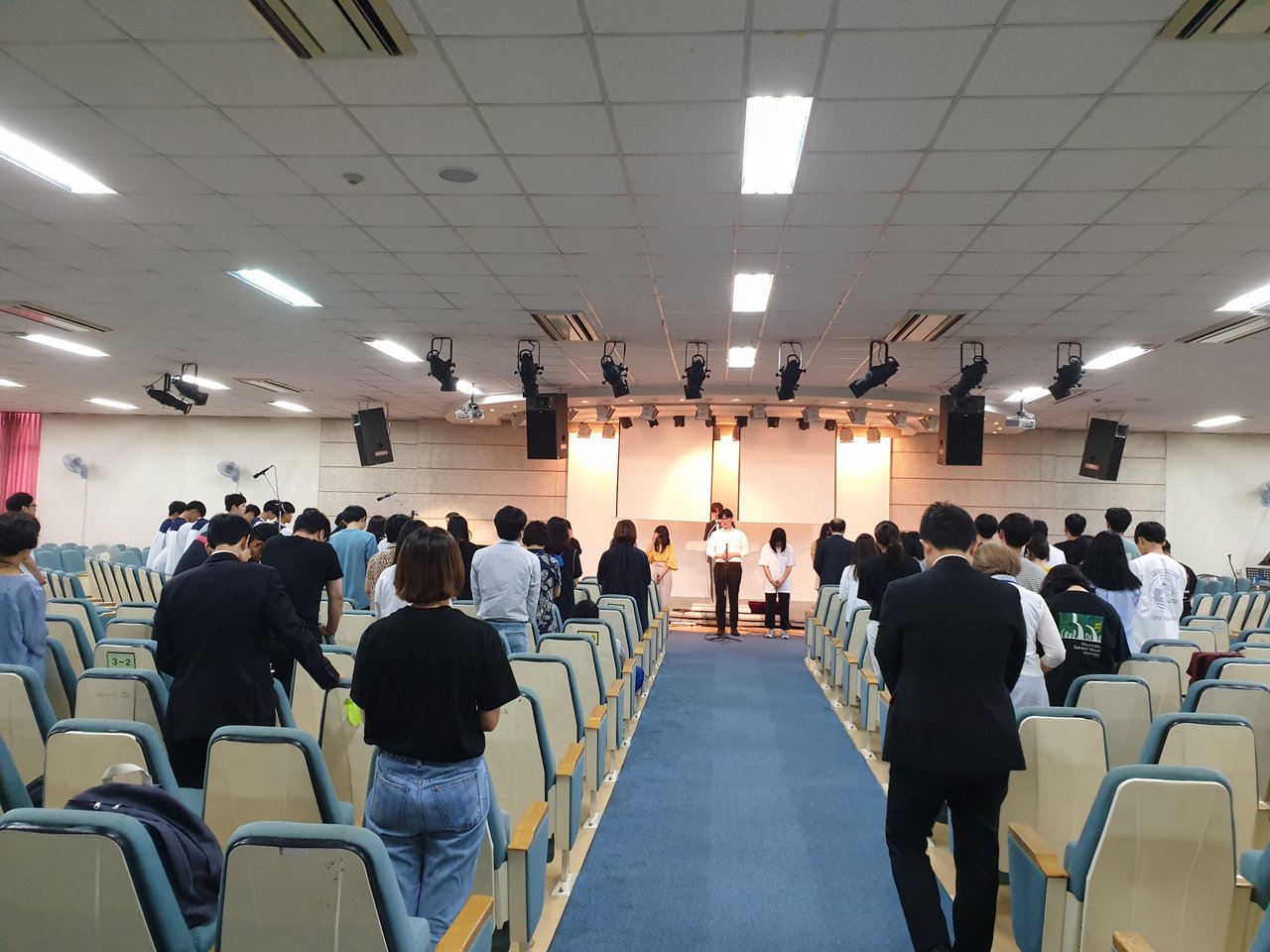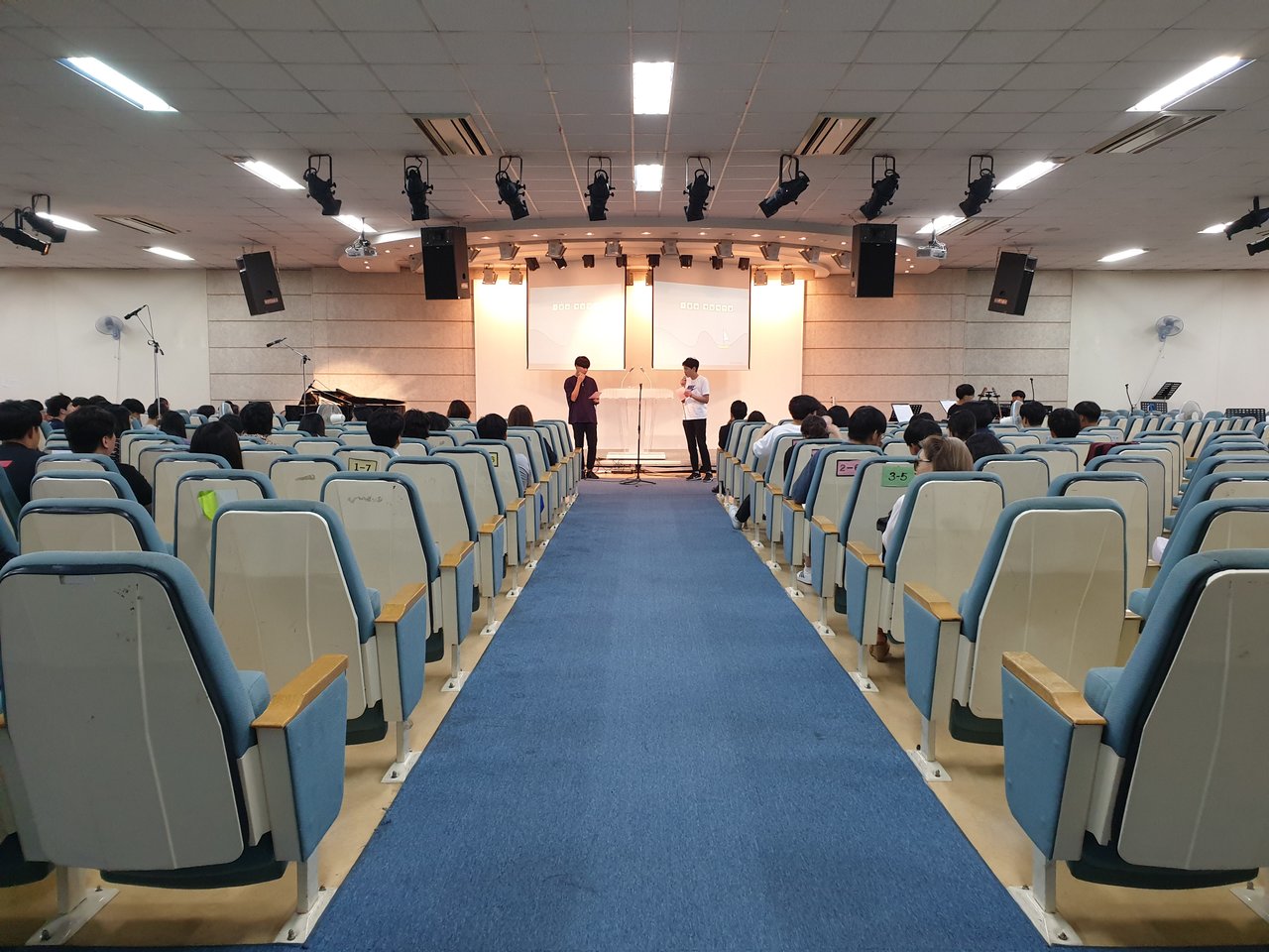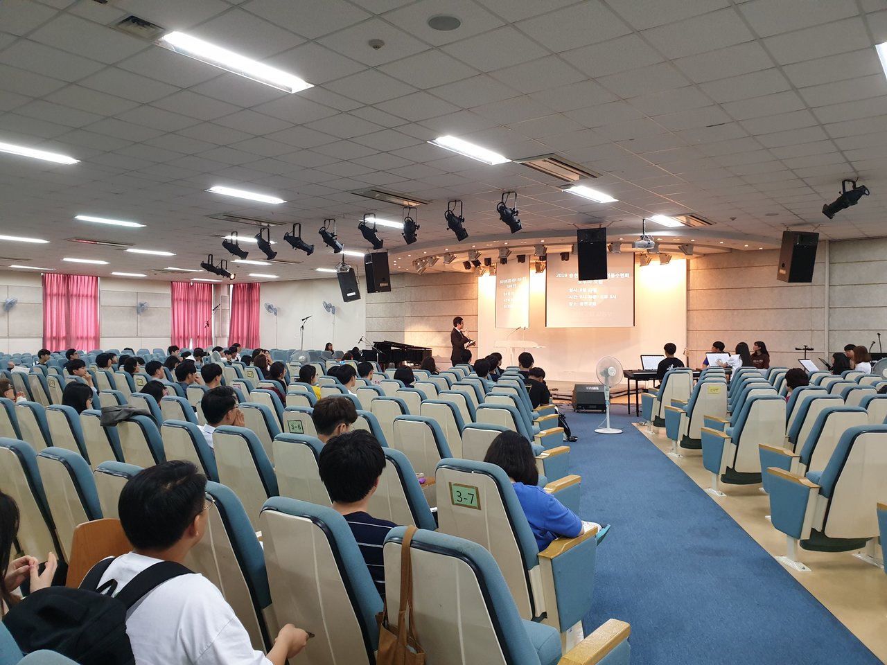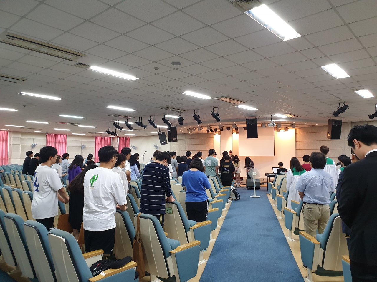 이번 주 고등부에서는 달라진 예배실의 모습속에서 찬양팀의 찬양과 사랑부에서 여름수련회 도우미를 모집하는 광고와 전도사님의 광고, 그리고 7월 생일 축하의 시간이 있었습니다~^^
