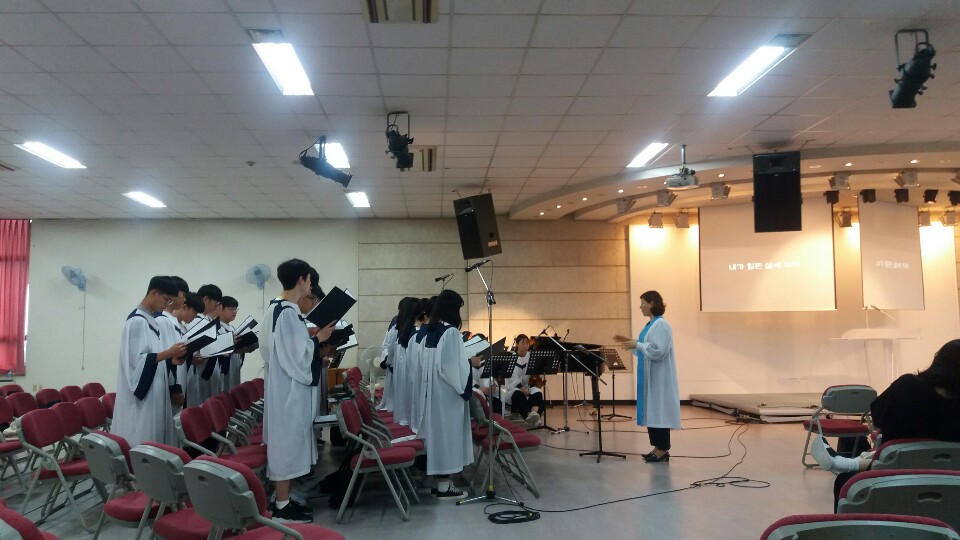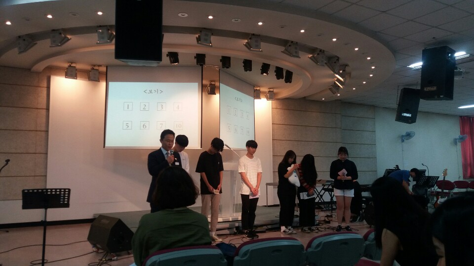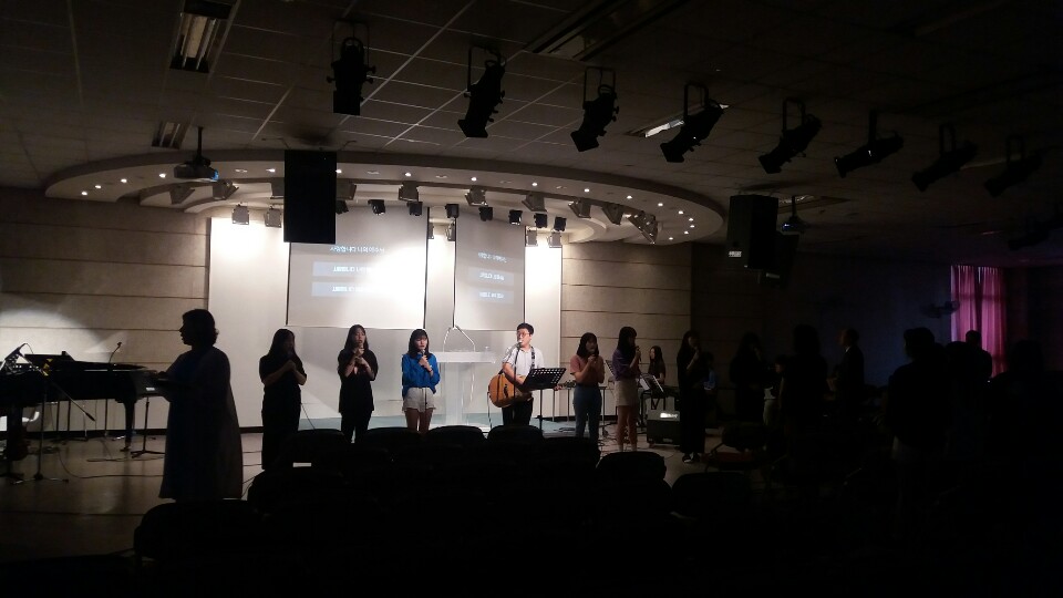 오늘 고등부에서는 찬양팀의 예배전 찬양,고1 선생님들의 헌금송, 찬양대의 찬양, 합심기도, 학생회의 8월 생일자 축하의 시간이 있었습니다~^^