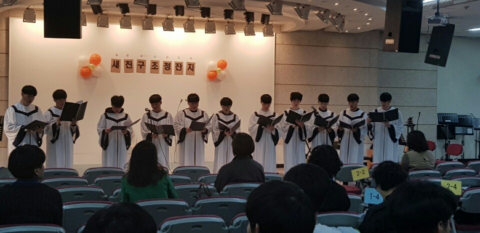 오늘 고등부 예배에서는 남성 중창팀의 헌금송과 목사님의 설교, 전도시님의 광고가 있었습니다~^^